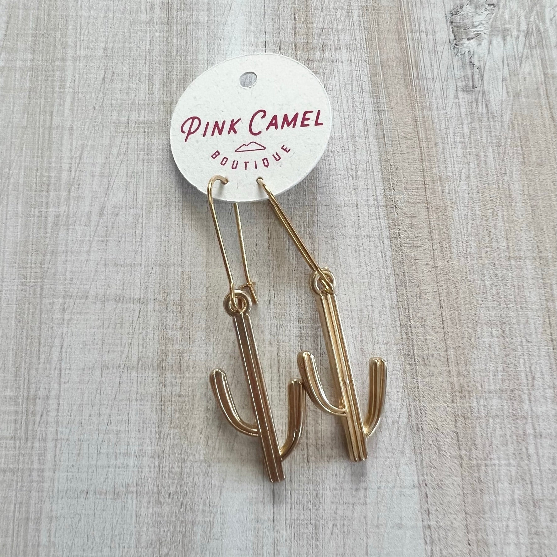 Gold filled teardrop hoop earrings with brass cactus charm.